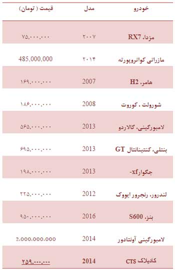 ، قیمت خودروهای گذر موقت در بازار به شرح جدول زیر است: