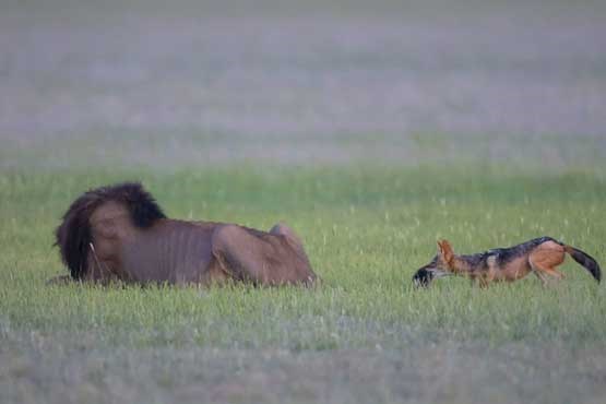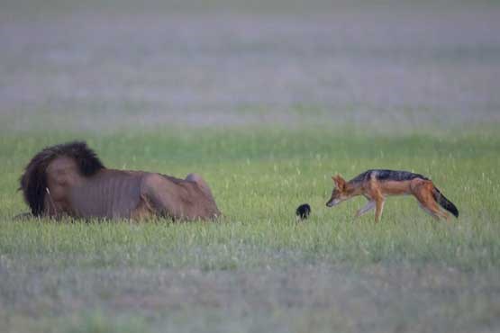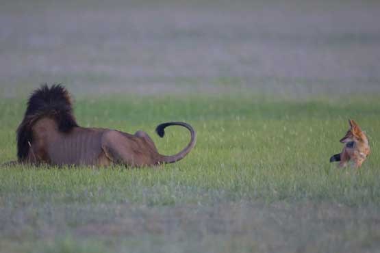 خبرطلایی؛“مارک درایسدال” عکاس 54 ساله اهل افریقای جنوبی در جریان گشت و گذار در پارک حیات وحش “کالاهاری” این شغال بازیگوش را در حالیکه به آرامی به شیر نزدیک می شد زیر نظر گرفت.